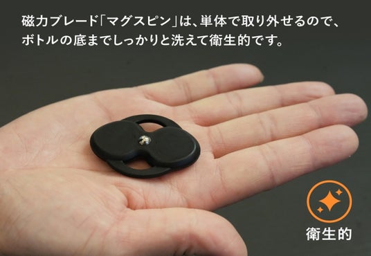 安全性の高いマグスピンは、刃の代わりに磁力で回転し、ボトル底部の強力マグネットにしっかり固定されるため、誤飲の心配もありません。