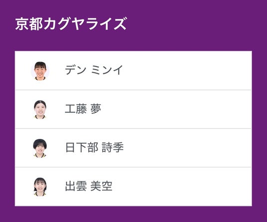 ノジマTリーグ 2025-2026シーズン 公式戦 10月11日開催 日本生命レッドエルフ vs 京都カグヤライズのベンチ入り選手を発表いたします。