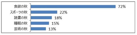 調査結果によると、「○○の秋」といえば「食欲の秋」と回答した人が約72%と最も多く、次いで「スポーツの秋」が22.4%でした。