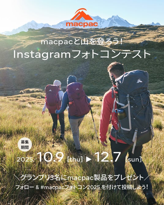 株式会社ゴールドウインが展開する、ニュージーランドの自然環境が生んだシンプルで機能的なパックを幅広く展開するアウトドアブランド「macpac(マックパック)」は、秋山シーズンの到来に合わせ、「macpacと山を登ろう! Instagramフォトコンテスト」を開催します。