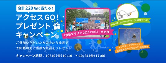 横浜マラソン ONLINE EXPO内の対象ページにアクセスしポイントを集めると抽選で素敵な景品があたるキャンペーンを実施します。