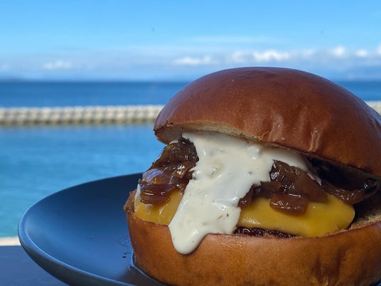 地元食材を使用した特製ハンバーガーと景色のお店。