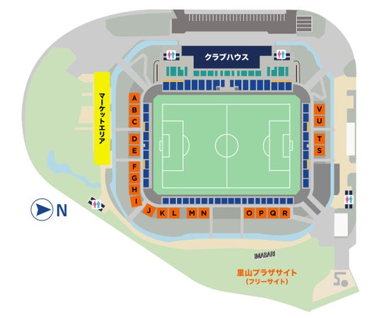 ※ゴール裏南北、バックスタンドは、キャンプエリアとなっておりますので、ご利用いただけません。