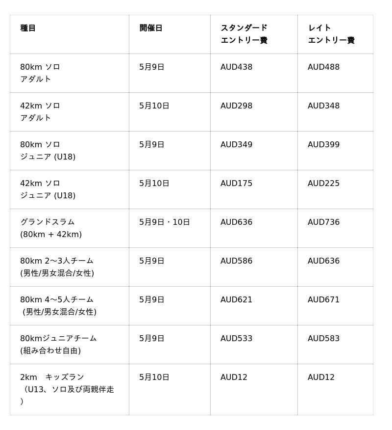■ コース:80kmウルトラマラソン(ソロ/2~5人のリレーチーム)、42kmトレイルマラソン(ソロ)