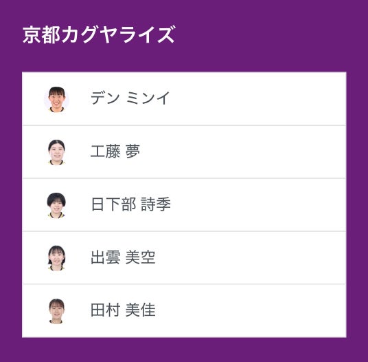 ノジマTリーグ 2025-2026シーズン 公式戦 10月13日開催 京都カグヤライズ vs 九州カリーナのベンチ入り選手を発表いたします。