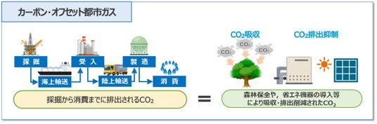 ※2: カーボン・オフセット都市ガスとは,都市ガスの原料である天然ガスの採掘から消費に至るまでの全工程で発生するCO2を,認証されたCO2クレジットによりオフセット(相殺)し,発生するCO2を実質的にゼロとみなすガスになります。