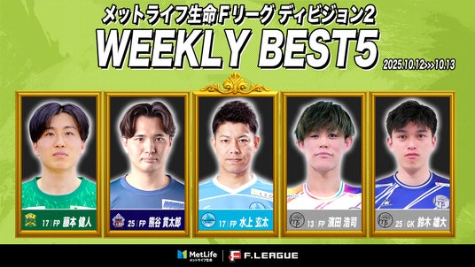 10月12日(日)~10月13日(月)に実施したメットライフ生命Fリーグ2025-26 ディビジョン2 第12節におけるベスト5をお知らせいたします。