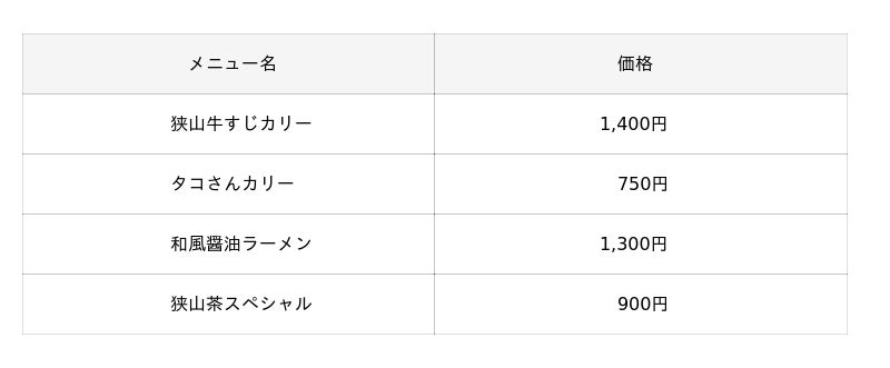 〈キッチンカー(TETOカレー)メニュー・一例〉