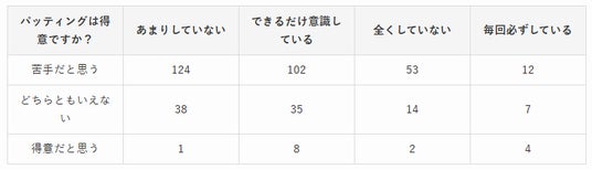 また「ほとんど練習しない」23.5%(94人)、「ラウンド前だけ打つ」20.3%(81人)と回答している人もいるなど、継続的に練習を行っていない層も一定数存在しています。
