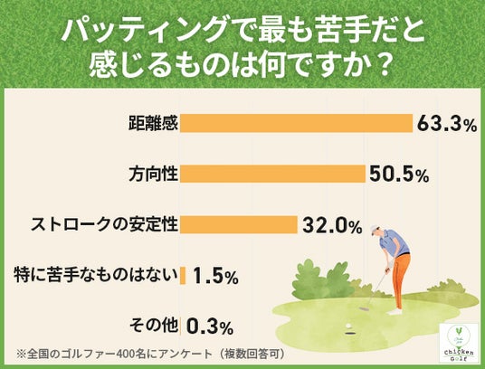 今回は、全国の男女400人を対象にアンケート調査を行い、パッティングにおける苦手意識や技術的な課題、練習方法やクラブの選び方など、ゴルファーが抱えるリアルな実態を明らかにしました。