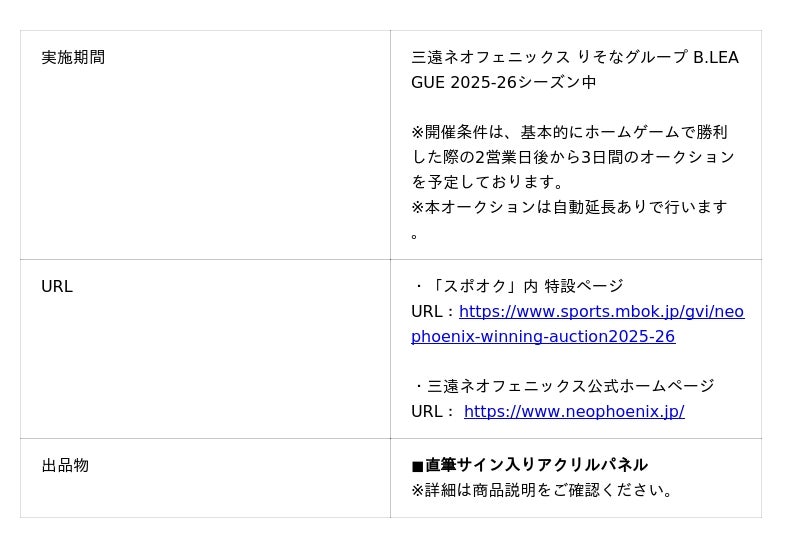 【三遠ネオフェニックス 2025-26シーズン WINNING AUCTION 概要】