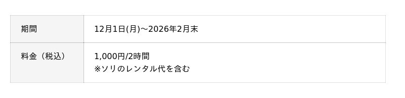 今シーズンはエリアを拡大して、子供から大人まで楽しめる多種多彩なソリをレンタルでご用意します。
