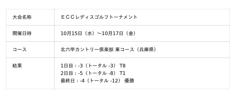 いつも応援ありがとうございます。先週の悔しさがエネルギーとなり、ECCレディスゴルフトーナメントで優勝することができました。