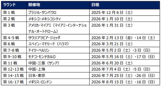 2025/26 ABB FIAフォーミュラE世界選手権 カレンダー