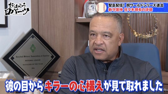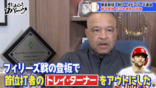 - ロバーツ監督「近いうちに爆発する」大谷翔平の復調を予期していた!?/「キラーの心構えが見て取れた」佐々木朗希の変化を評価 ロバーツ監督が語るワールドシリーズ直前の舞台裏『おはようロバーツ』無料配信中