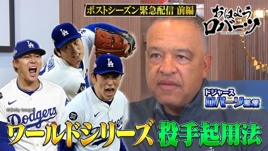 本配信回では、ナ・リーグ優勝決定シリーズ第3戦の試合直前(10月17日)のロバーツ監督を直撃。大谷翔平選手、佐々木朗希選手の起用やポストシーズンの裏側、ワールドシリーズへの覚悟が語られました。