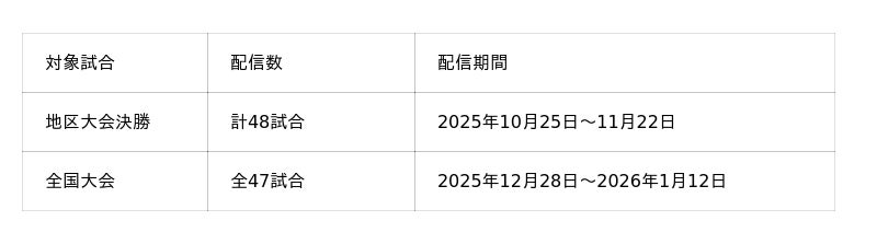 株式会社運動通信社(本社:東京都港区、代表取締役社長 CEO:若村 祐介、以下 運動通信社)とKDDI株式会社(本社:東京都港区、代表取締役社長 CEO:松田 浩路、以下 KDDI)および民間放送43社は2025年10月25日から、第104回全国高校サッカー選手権大会と地区大会決勝におけるライブ動画、アーカイブ動画およびハイライト動画を、運動通信社とKDDIが共同で運営するスポーツメディア「SPORTS BULL(スポーツブル)」の特設ページ(URL:https://sportsbull.jp/highschool_soccer/)で配信します。