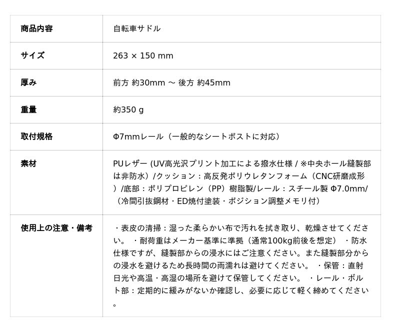● 人間工学形状:ペダリング効率を損なわず、坐骨を安定サポート