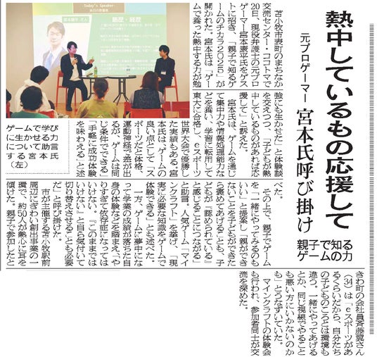■地元紙「苫小牧民報」に掲載されました
