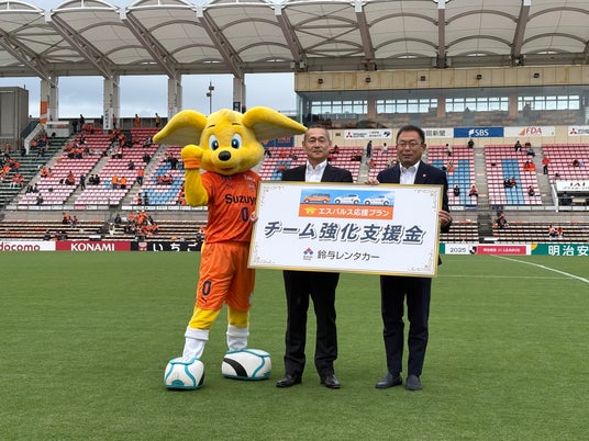 あわせて、株式会社エスパルス(本社:静岡市、代表取締役社長:山室 晋也、以下、「エスパルス」)へチーム強化支援金を贈呈いたしましたのでお知らせいたします。