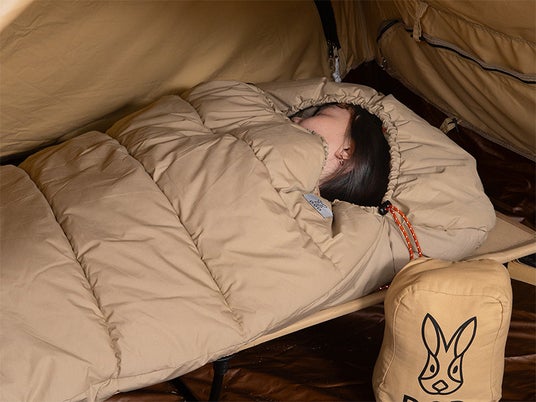毛布素材×フード×ネックウォーマーで-1℃でも快眠寝袋の内側全体に思わず顔をうずめたくなるようなボリューミーな毛布素材を採用。さらに暖気を逃さないためのフードとネックウォーマーも装備することで高い保温性を実現しました。-1℃の環境でも快適にご利用いただけます。