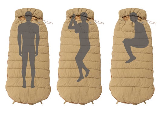 「ゆったりマミーシュラフ」は暖かさと寝心地の良さを両立させた1人用の秋冬寝袋。寝袋といえば体にフィットして保温性が高い「マミー型」と広々として寝返りが打ちやすい「封筒型」の2種に形状分類されます。本製品はマミー型の保温力はそのままに布団のように手足を伸ばせる解放感をプラス。マミー型と封筒型の“いいとこどり”により、寝袋での睡眠に不安や抵抗がある方でも安心して利用いただけます。