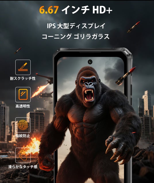 広々とした6.67インチのIPS大画面は、どんな角度からでも鮮やかでクリア。動画もゲームも、細部まで美しく映し出します。指紋が付きにくい特殊加工で、常にスッキリした画面をキープ。スムーズなタッチ操作で、ストレスのない快適な使用感を実現します。