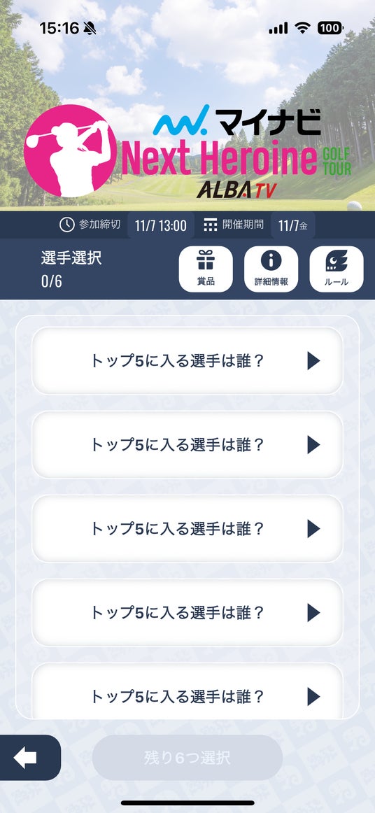 - 若手女子ゴルファー登竜門マイナビネクストヒロインゴルフツアー 第15戦『kintone Golf Tournament 』TOP5選手&優勝選手予想をスポーツ予想アプリ「なんドラ」で開催!