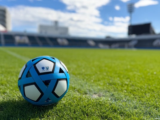 時間をかけて自分で作り上げたサッカーボールを持って、いよいよJリーグの試合も行われている三ツ沢のピッチへ。