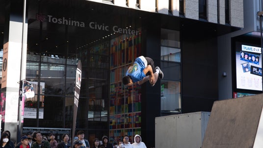 中池袋公園を舞台に行われた1on1パルクールトーナメント「ONE FLOW BATTLE」では、スーパートリックやビッグジャンプなどの大技が次々と繰り出され、観客の歓声が絶えなかった。