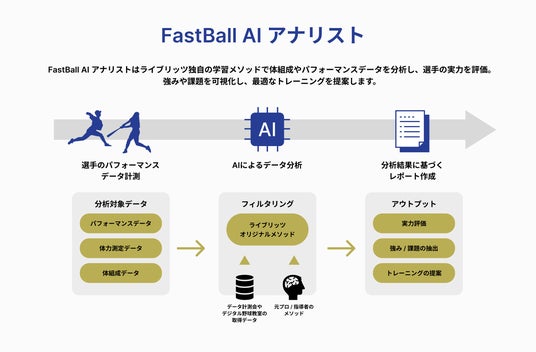 この度、ライブリッツはスポーツ業界におけるデータ分析の促進、およびデータ活用におけるチーム課題解決のため、新たに「FastBall AI アナリスト」を提供し、計測データの分析をサポートします。本サービスは、体組成(身長・体重など)やパフォーマンスデータ(球速・回転数など)を分析し、選手の長所・課題、改善方法、推奨トレーニングを提案するレポートを生成AIにて作成します。