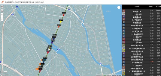 - 各チームのタスキにGPS機器を装着し、位置情報をリアルタイムで取得
