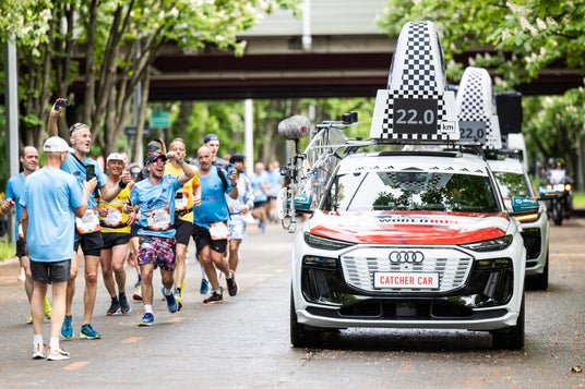 「Wings for Life World Run」は通常のランニングイベントとは異なり、世界中のランナーが一斉にスタートするだけでなく、ゴール地点がありません。スタートから30分後、キャッチャーカーと呼ばれる追跡車がスタート地点から走り出し、参加者たちを追いかけます。徐々にスピードを上げていくキャッチャーカーに追い抜かれた時点で、その参加者はレース終了となります。