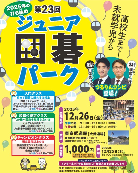 - 囲碁を知っている人も知らない人も東京武道館で2025年の“打ち納め”!「第23回 ジュニア囲碁パーク」開催