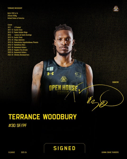 「このたび、群馬クレインサンダーズはテレンス・ウッドベリー選手との契約が合意に至りましたのでお知らせいたします。ウッドベリー選手は、長年にわたり日本でプレーし、高いスキルと豊富な経験を持つ選手です。