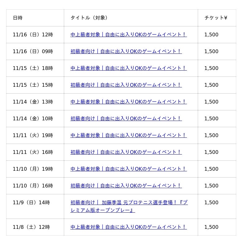 日程|11月開催予定(前半)