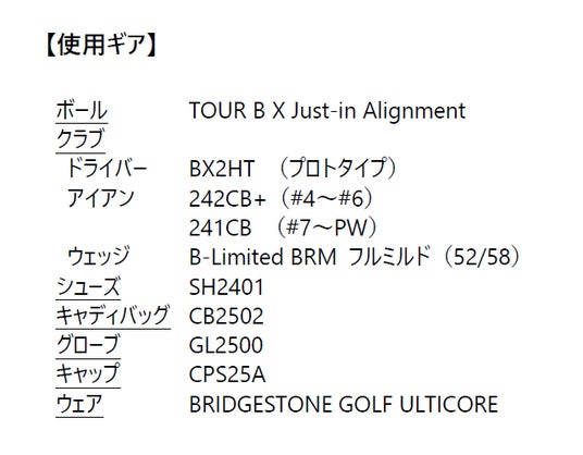 今回、コスモヘルスカップ シニアゴルフトーナメントで優勝することができ、大変うれしく思っています。今大会では、特にドライバーショットの方向性と飛距離が安定しました。使用したブリヂストンのドライバー「BX2HT」のおかげで、風の中でもスピン量を抑えた強い弾道でフェアウェイをキープでき、自分のイメージ通りのプレーができたと感じています。これからも最高のパフォーマンスをファンの皆様にお届けできるよう精進してまいります。今後ともご声援のほどよろしくお願いいたします。