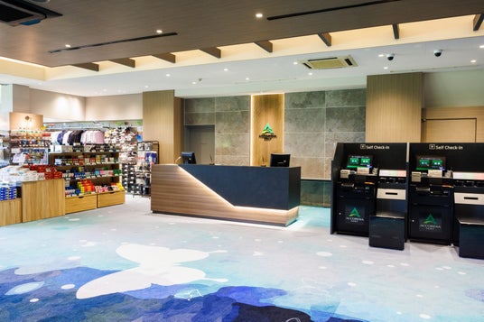 幸せを運ぶ蝶が舞うフロント・ロビー