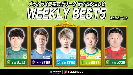 11月8日(土)~11月9日(日)に実施したメットライフ生命Fリーグ2025-26 ディビジョン2 第14節におけるベスト5をお知らせいたします。