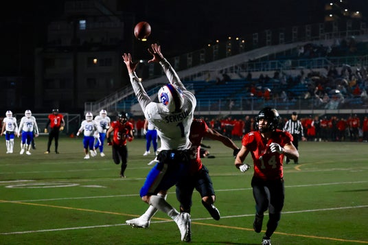 試合時間残り9秒で逆転タッチダウンパスをキャッチするWR#1ブギー・ナイト選手