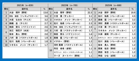 - 【青少年の好きなスポーツ選手2025】大谷翔平が4回連続の1位!