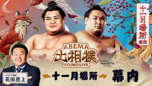 2025年11月9日(日)開催、大相撲十一月場所の全取組を「ABEMA」で無料生中継