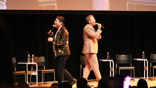 今回のイベントでは、真中さん・五十嵐さんによるKinki Kidsの「硝子の少年」のデュエット歌唱でスタート。ペンライト乱れる会場はテンションMAXでの幕開けに続き、田中瑛斗投手(読売ジャイアンツ)、石山泰稚投手(東京ヤクルトスワローズ)の登場で会場の興奮は最高潮に。遠慮のないトークや裏話たっぷりでお客さんは笑いが止まらない!トークの中では、4名による誇張モノマネも披露。まさに「伝説」となるイベントは、間違いなく今回も必見です。