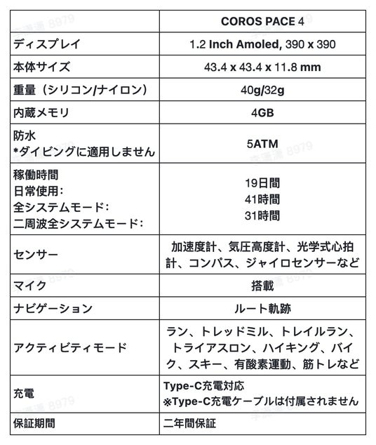 ■ COROS PACE 4製品仕様
