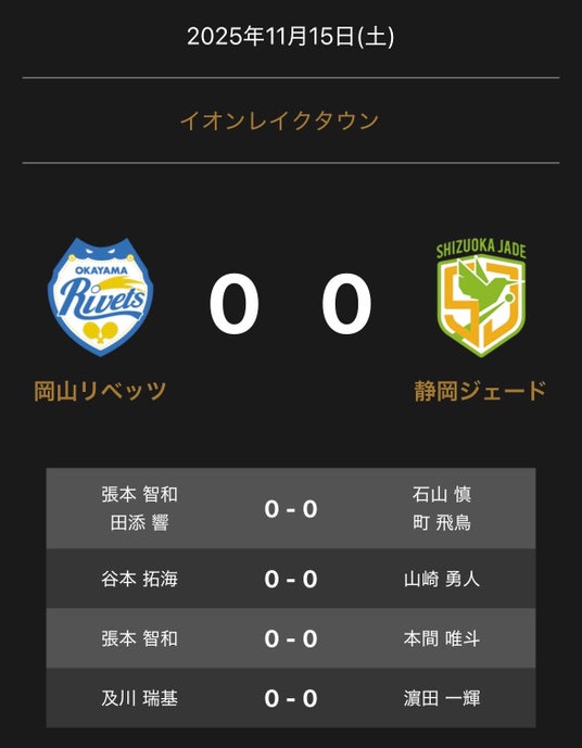 - ノジマTリーグ 2025-2026 公式戦 11月15日開催 岡山リベッツ vs 静岡ジェード 対戦オーダー発表