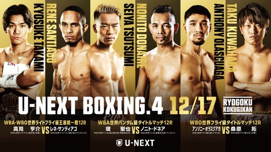 - 『U-NEXT BOXING.4』 追加カード発表!WBO世界フライ級オラスクアガの防衛戦と、元世界王者・ユーリ阿久井政悟の再起戦が実現!