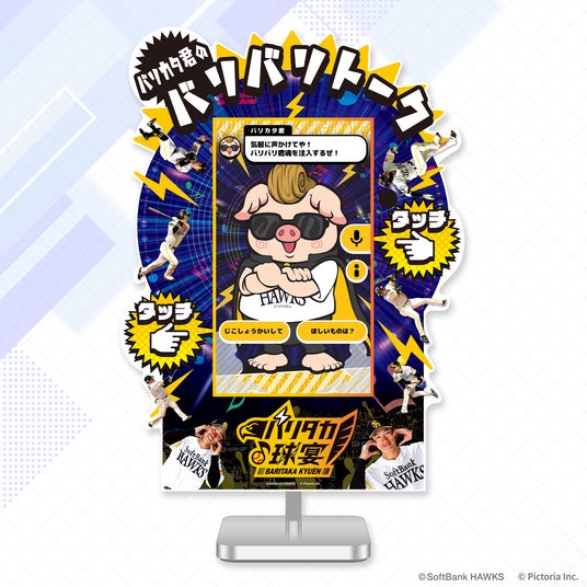 同球団のキャラクター「バリカタ君」のAI対話システムを開発し、AI対話型デジタルサイネージ「バリカタ君のバリバリトーク」としてファンフェスティバル当日、みずほPayPayドーム7ゲート内に実証設置されます。