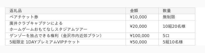 J2リーグへ昇格するための強化費を目的としたクラウドファンディング「#ツエーゲン金沢の未来を共に」に、スタジアムで味わえる体験などの返礼品が追加。