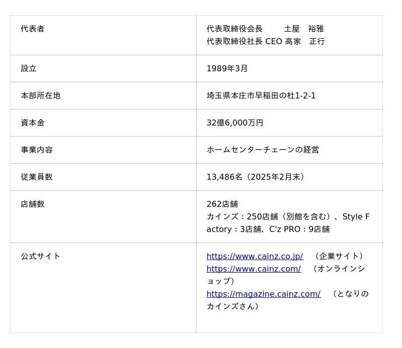 株式会社カインズは、29都道府県下に262店舗を展開するホームセンターチェーンです。