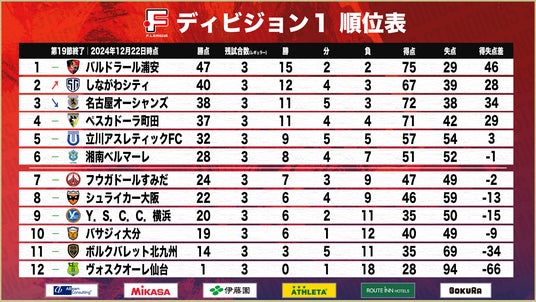 ■現在の順位表 ※第19節終了|12月22日時点